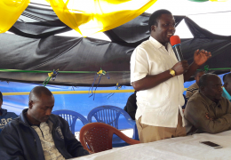 ...Katibu Tawala Wilaya ya Kalambo Ndg. Frank Sichalwe kwa niaba ya Mgeni rasmi Mkuu wa Wilaya ya Kalambo, akisisitiza jambo alipokua akihutubia wananchi waliojitokeza katika maonesho ya Nanenane ngaz...